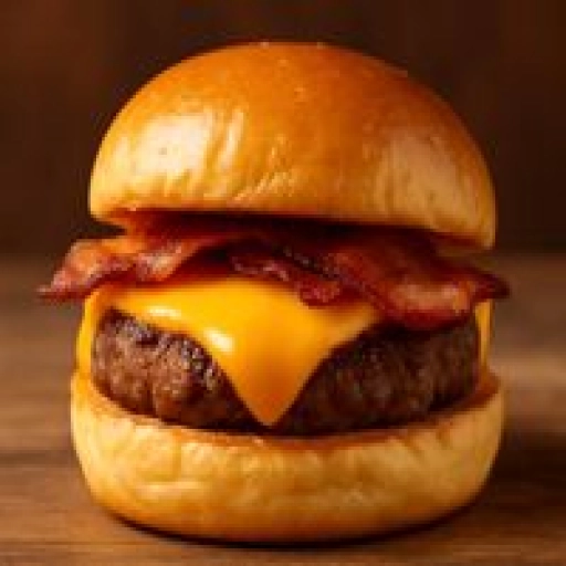 Pão brioche, blend bovino de 100g, cheddar cremoso e bacon crocante. Ideal para a criançada.